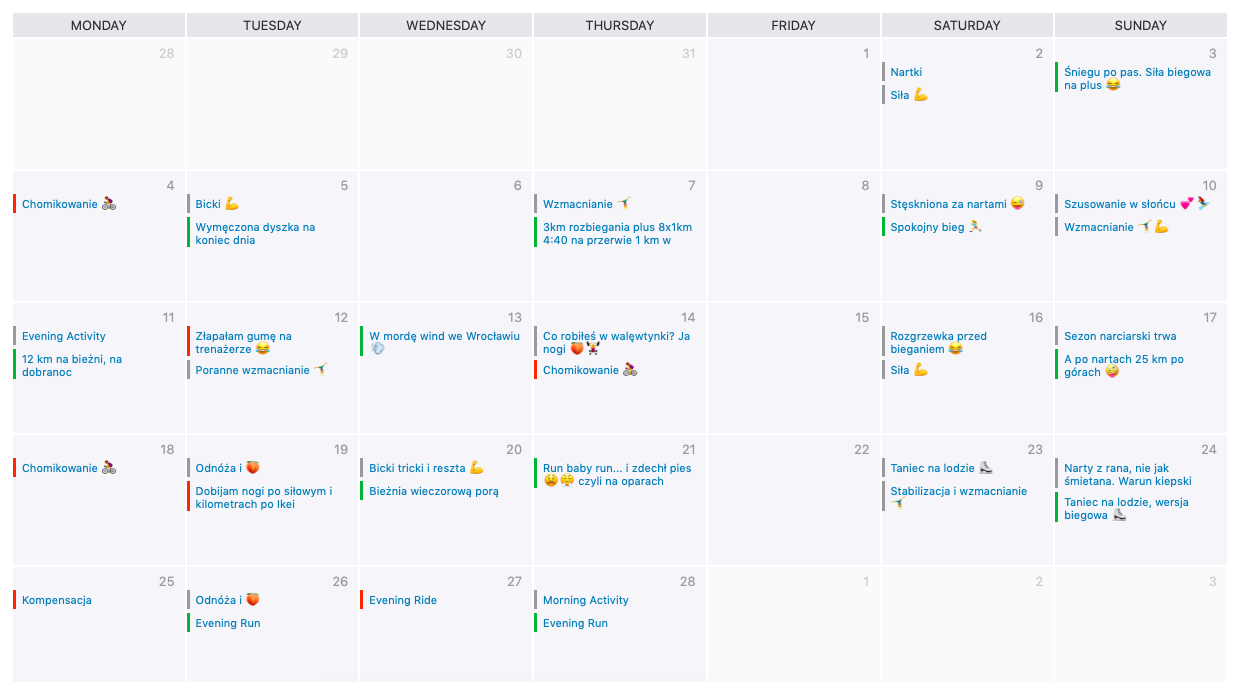 Treningi siłowe to 16 godzin wyjęte z mojego lutowego życiorysu. Ale to pięknie oddaje przy górskich wybieganiach <3 Stabilizacja u mnie nigdy nie była na takim poziomie! Cel na zimę - wzmocnić się, jak tylko się da, osiągnięty! Mamy to :)