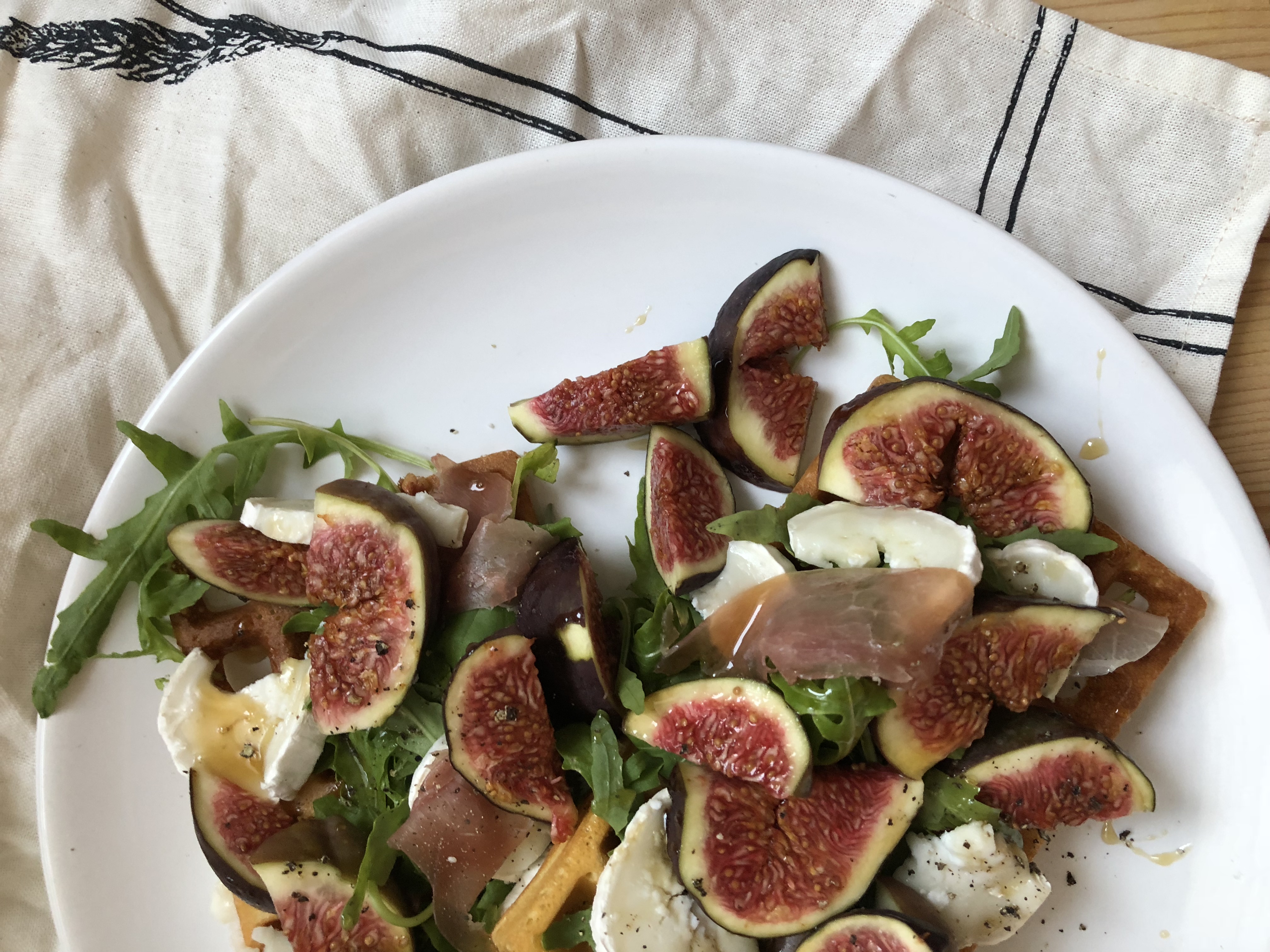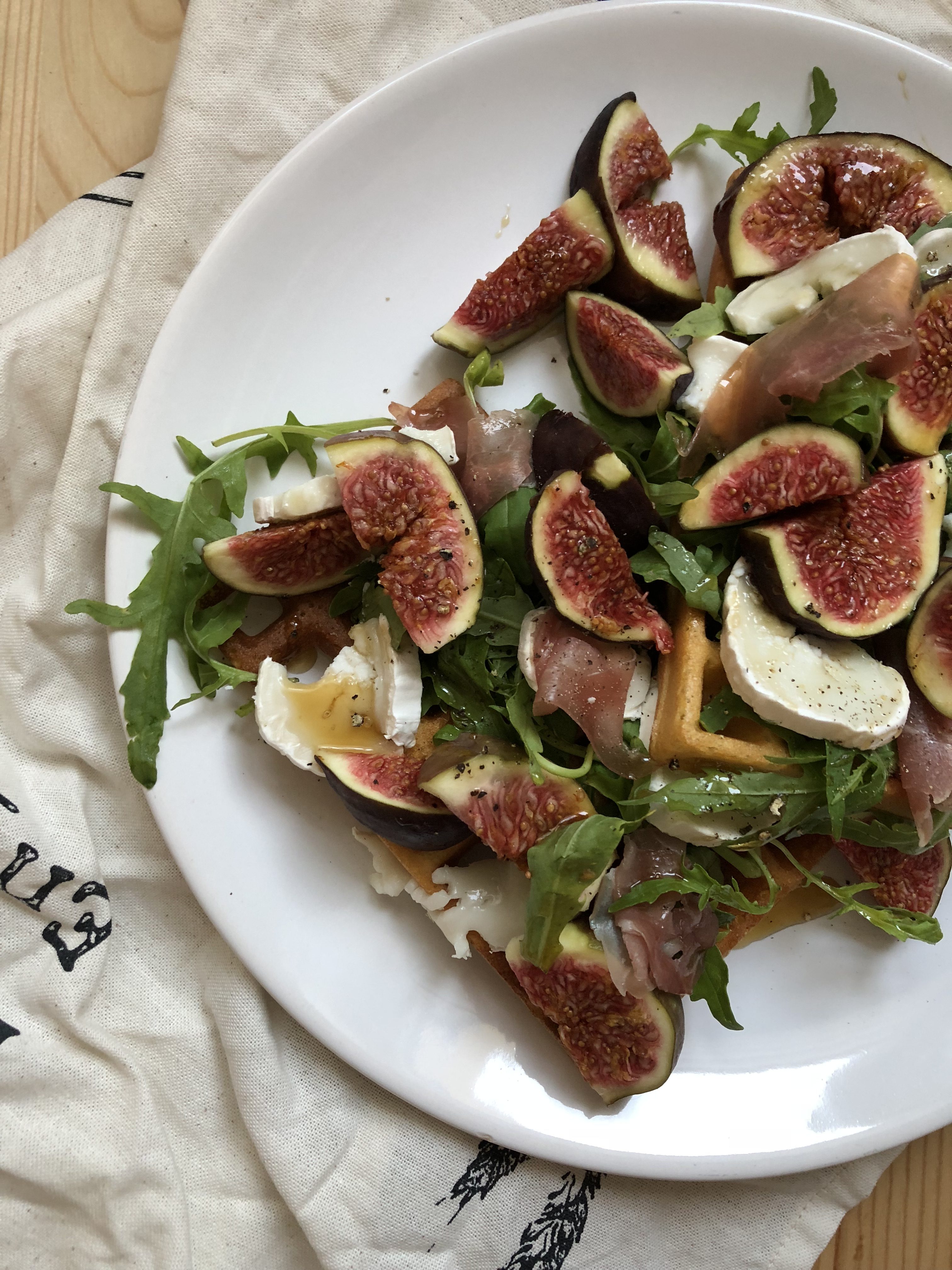 Figi, kozi ser, rukola, szynka parmeńska i miód. No i gofry. Śniadanie mistrza!